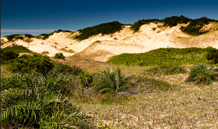 A restinga é um ecossistema que se formou onde há milhares de anos era o fundo do mar, e pertence ao bioma Mata Atlântica.